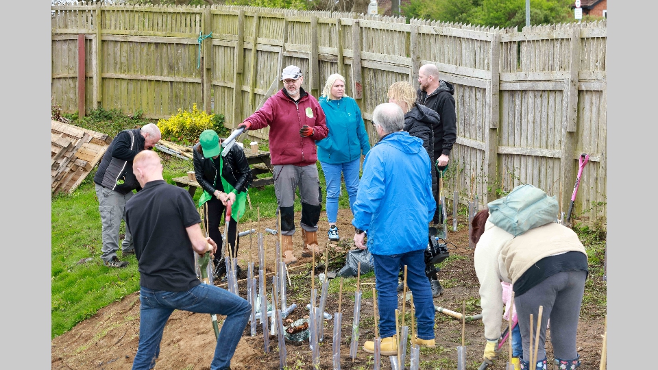 Cramlington Post Office allotments were visited by representatives of Newcastle Building Society to help plant native broadleaf trees and to celebrate Earth Day 2024. Volunteers from Cramlington Allotment Forum planted the saplings to create a hedgerow which will create wildlife habitats and encourage biodiversity.