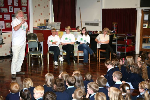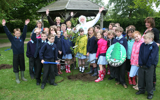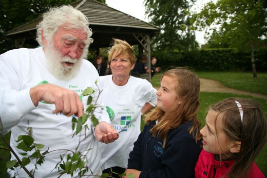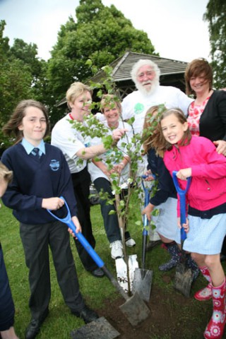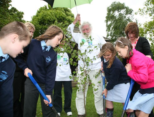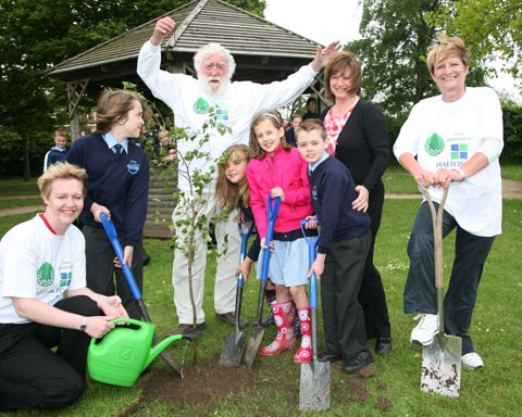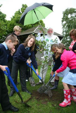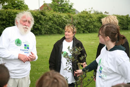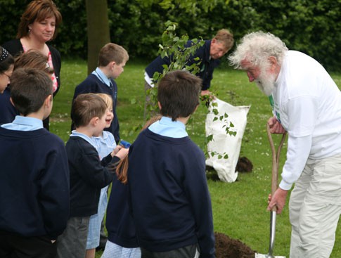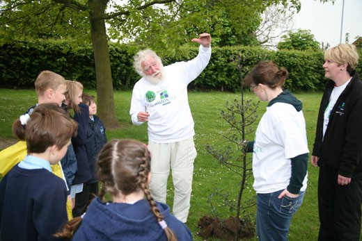 Moore Primary School, Warrington received their share of trees sponsored by Halton Lea Shopping Centre and learned about trees from David Bellamy himself.