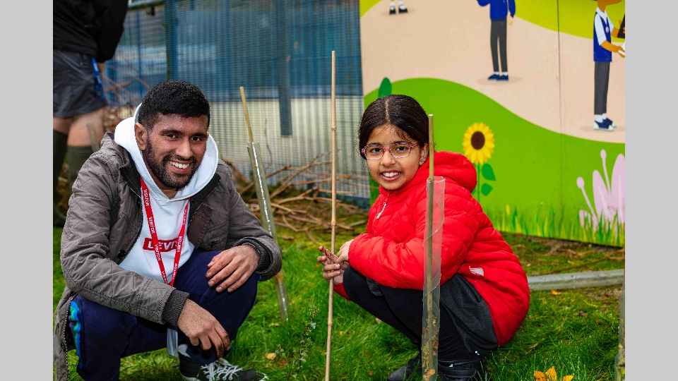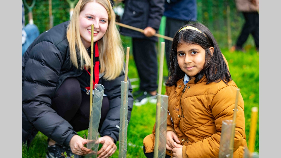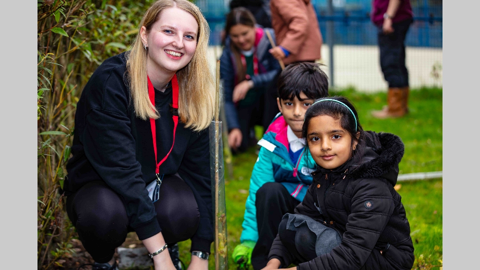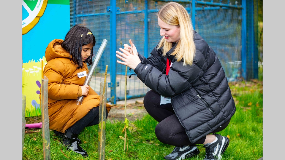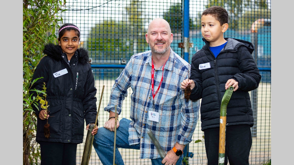 “We're here today tree planting, which is one of our environmental activities that we do to give something back to the planet and to the local community. We've been tree planting now since 2021 And in that time, we've planted 800 trees at schools around the country with the help of our colleagues and lots of students along the way. We're really passionate about planting trees at schools because it helps the ecosystem it educates the students and it makes the schools a nice greener place for them to learn.”